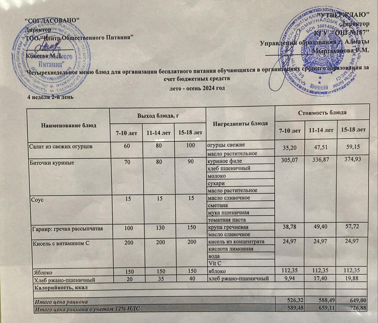 Ыстық тамақ » КГУ «Общеобразовательная школа №187 » Управления образования г.Алматы
