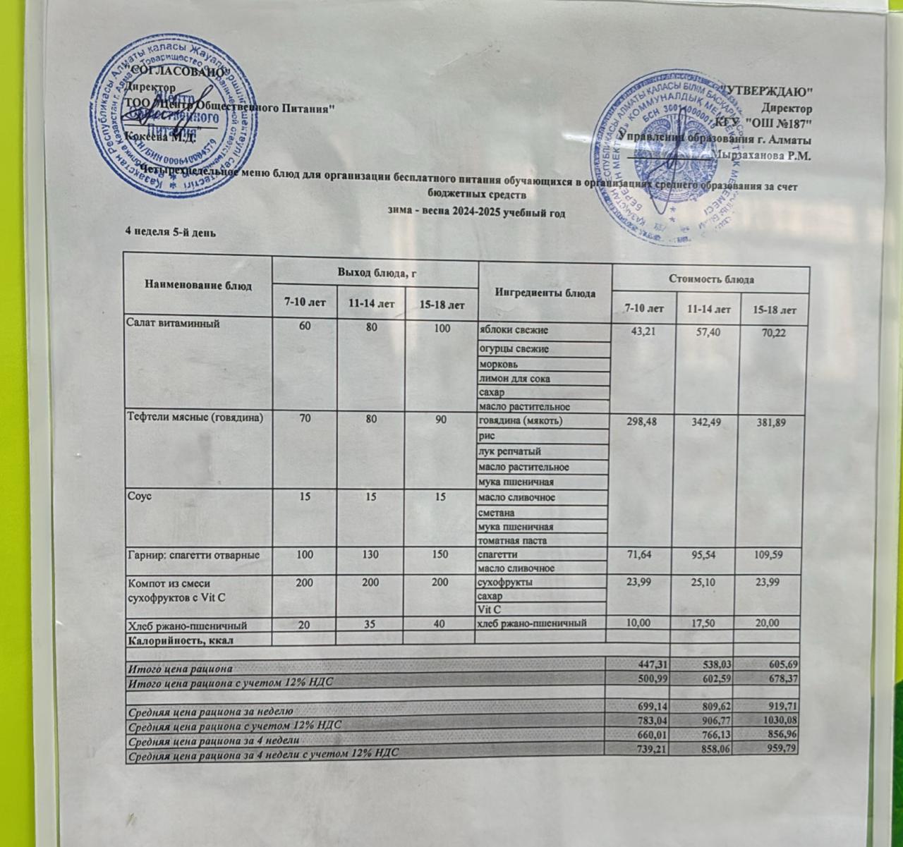 Ыстық тамақ » КГУ «Общеобразовательная школа №187 » Управления образования г.Алматы