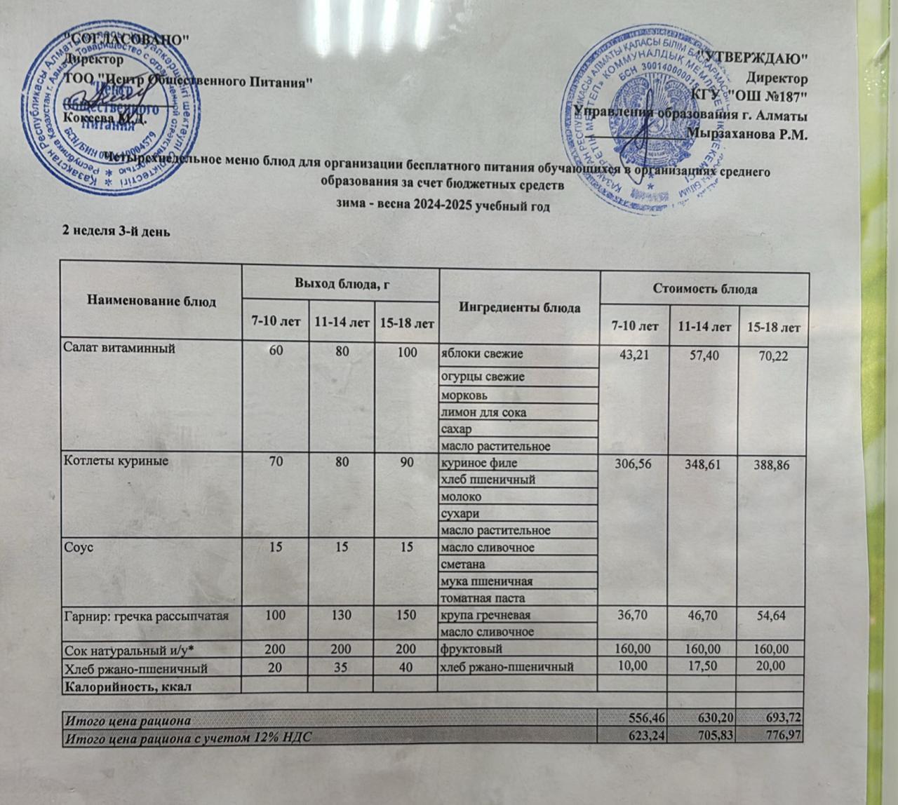 Ыстық тамақ » КГУ «Общеобразовательная школа №187 » Управления образования г.Алматы