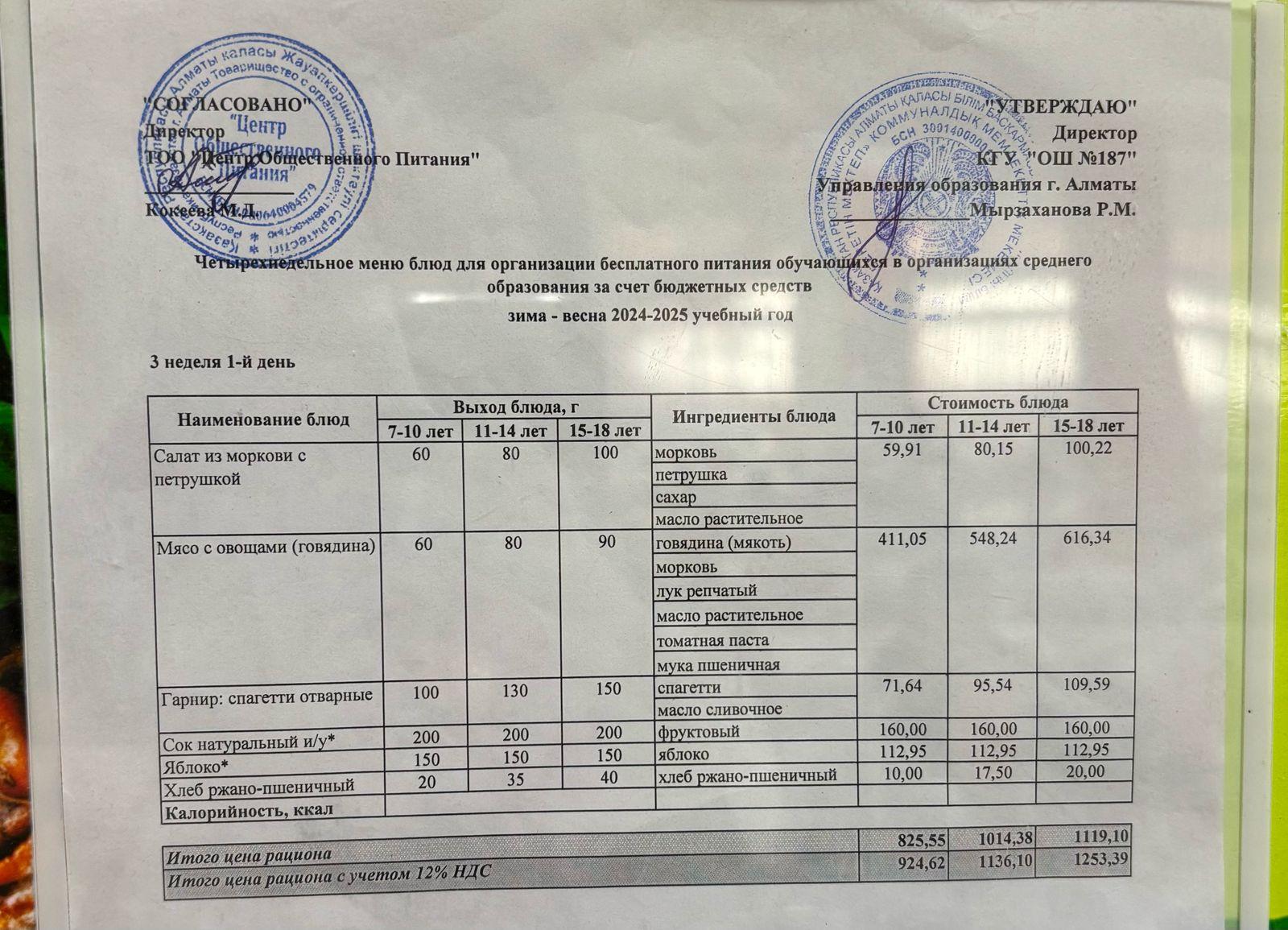 Ыстық тамақ » КГУ «Общеобразовательная школа №187 » Управления образования г.Алматы