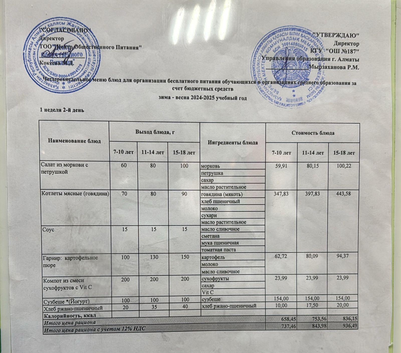 Ыстық тамақ » КГУ «Общеобразовательная школа №187 » Управления образования г.Алматы