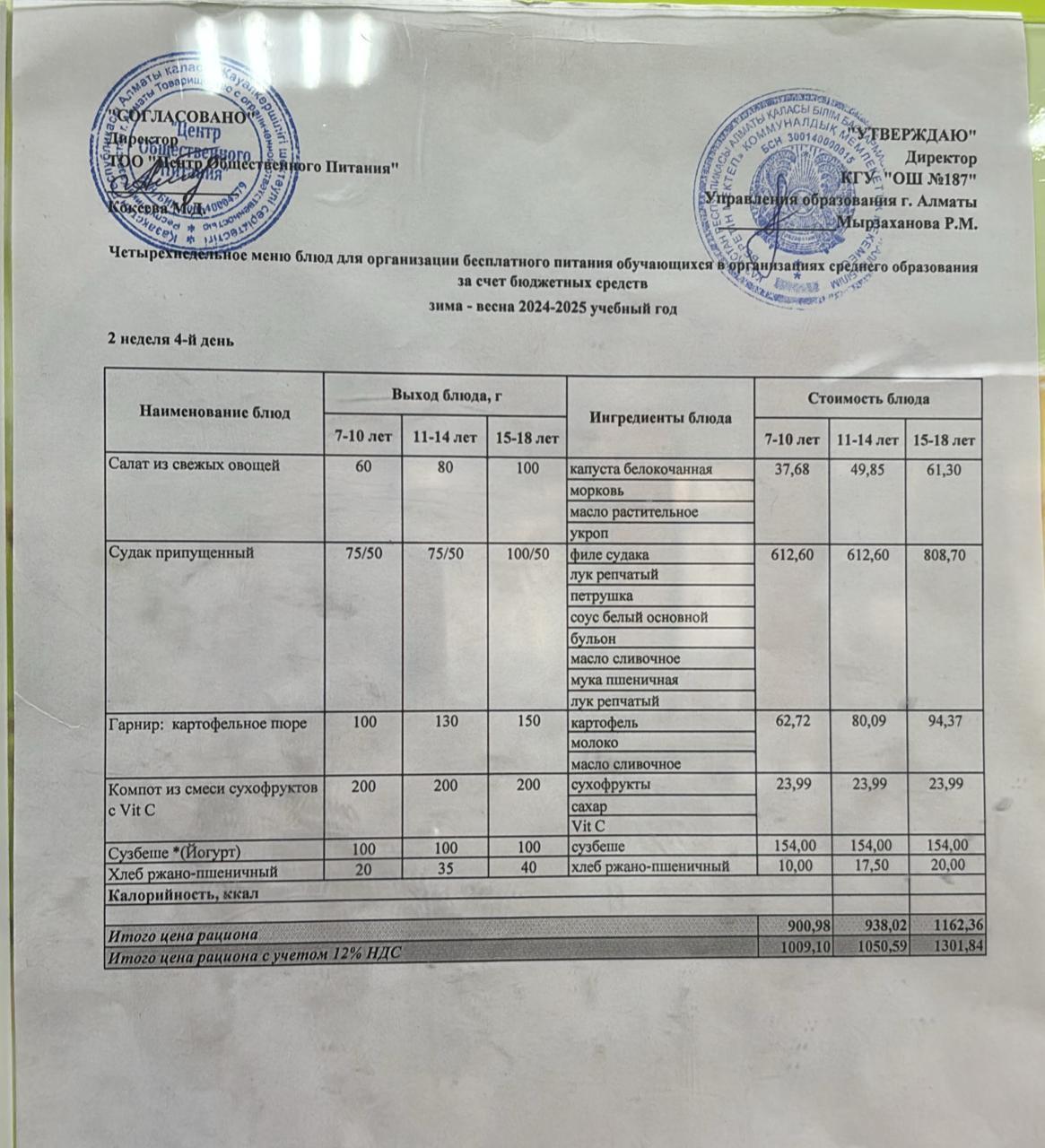 Ыстық тамақ » КГУ «Общеобразовательная школа №187 » Управления образования г.Алматы