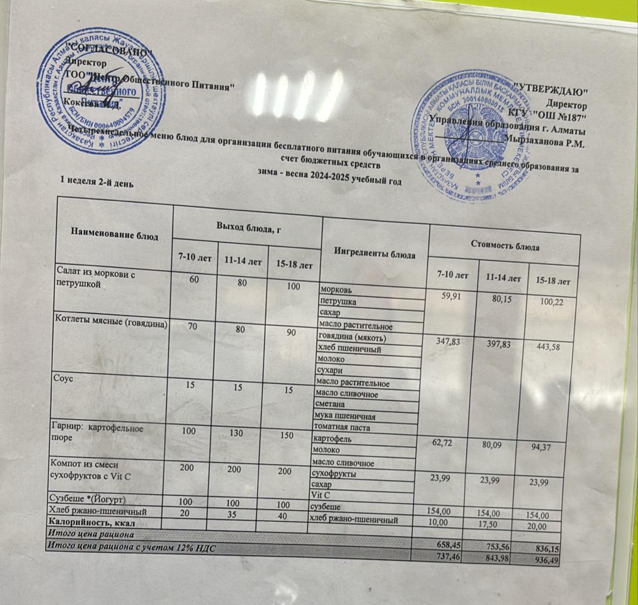Ыстық тамақ » КГУ «Общеобразовательная школа №187 » Управления образования г.Алматы