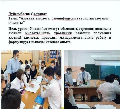 Тема: “Азотная кислота. Специфицеские свойства азотной кислоты” Цель урока: Учащийся смогут объяснить строение молекулы азотной кислоты.Знать уровнения реакций получения азотной кислоты, проводит экспериментальную работу и формулирует выводы каждого опыта. Учитель химии Дуйсембаева С.Д.