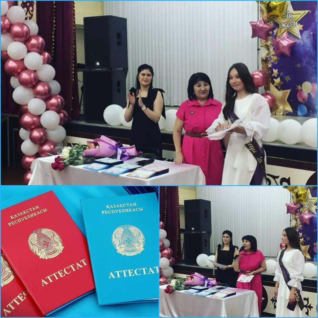 Ещё недавно, прячась за букеты, Входили вы с волненьем в первый класс. И вот уже напутственным советом Родная школа провожает вас. Осталось детство в школьных коридорах, Звонки умолкли, стихли шум и гам, И лишь воспоминанья в разговорах Звучат повсюду тихо, тут и там. Вы подросли, окрепли, возмужали, Готовы горы на пути свернуть! Ваш день настал! Его вы все так ждали. Сомненья прочь! Смелее, в добрый путь! Обладательница «Алтын белгі» Искакова Амина Талгатовна