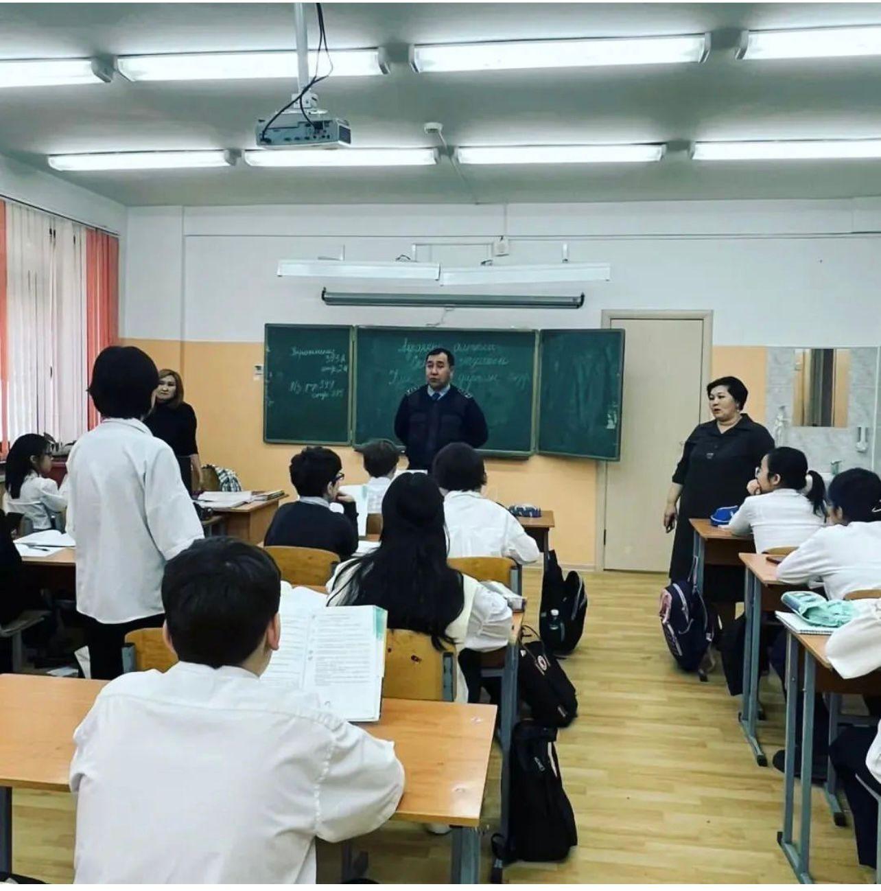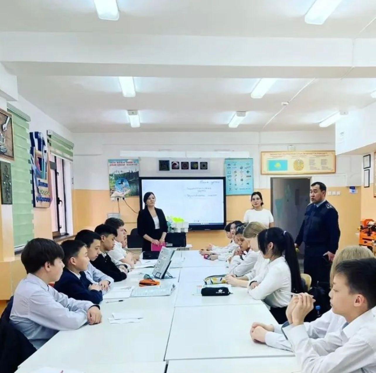 B рамках месячника правового воспитания с целью профилактики правонарушений и преступлений среди несовершеннолетних в КГУ «ОШ N° 187» состоялись профилактические беседы обучающихся 5-8 классов со школьным инспектором, ОЮП омпс капитаном полиции И.С.