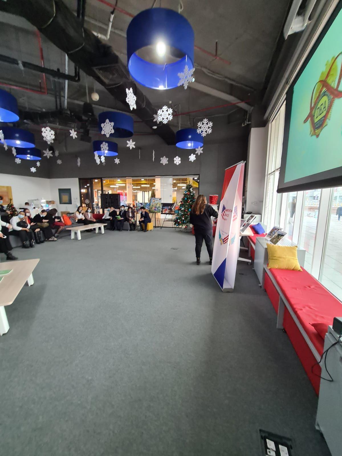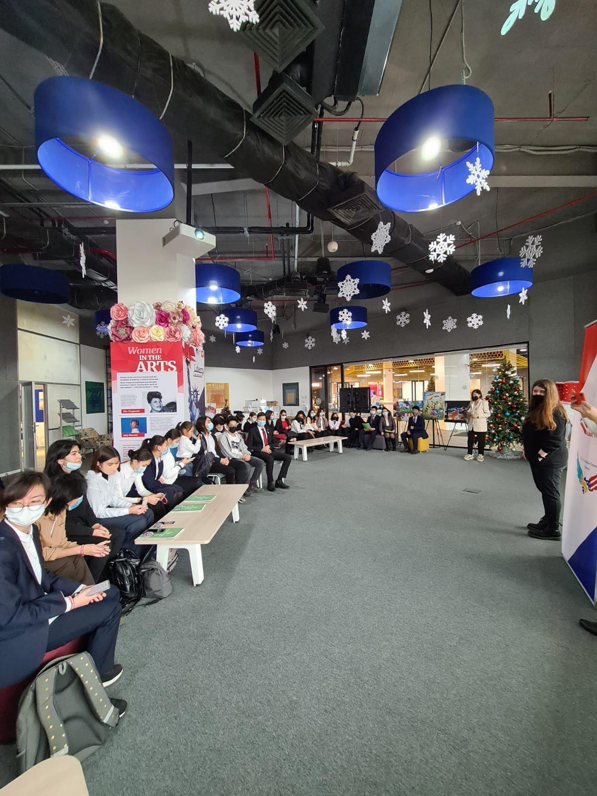 8 декабря в Американском уголке города Алматы при содействии Комиссии по борьбе с наркоманией Наурызбайского района прошла встреча старшеклассников Наурызбайского района со специалистом отдела профилактики Администрации по борьбе с наркотиками США Джоанной Миндерко. Тема обсуждения Профилактика наркомании среди молодежи.