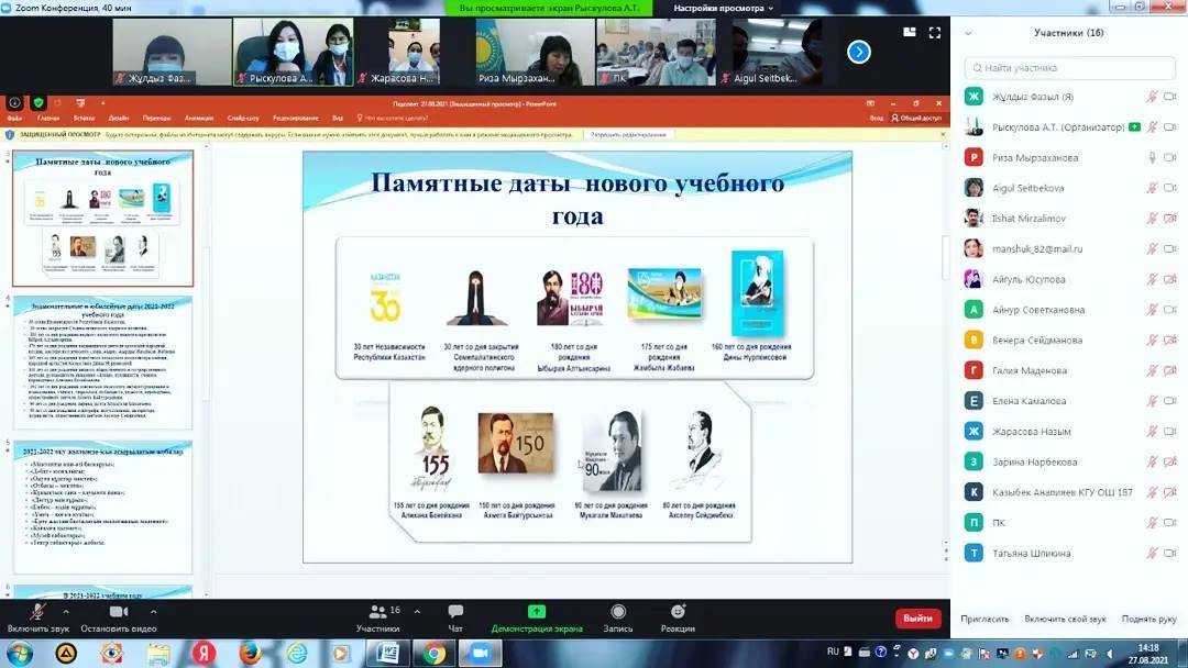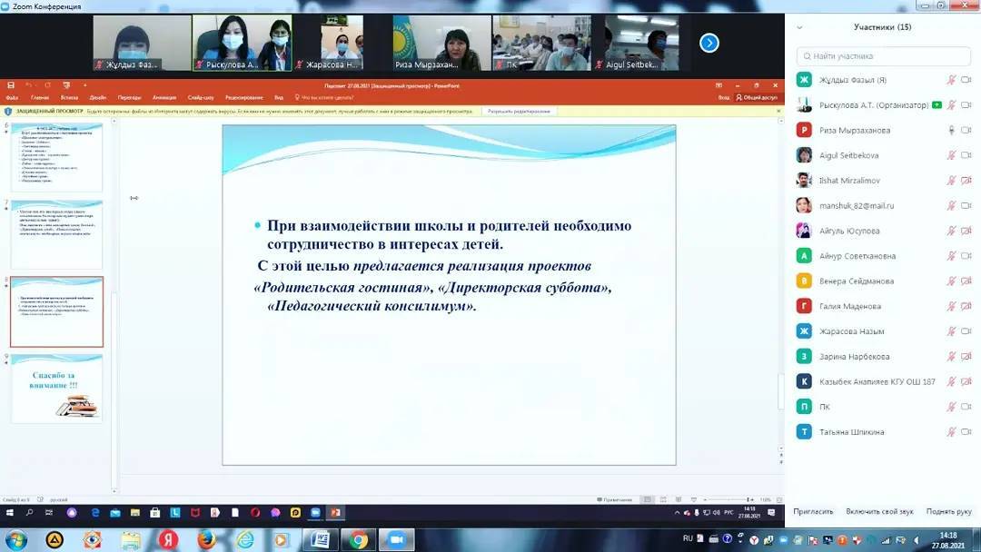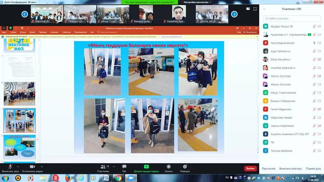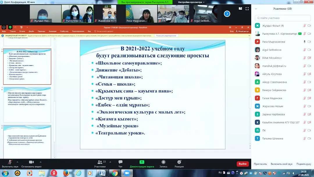 27 август 2021 0 1 2 3 4 5 В "КГУ ОШ"187 состоялся Педагогический совет «планы на 2021-22 учебный год». В "КГУ ОШ"187 состоялся Педагогический совет «планы на 2021-22 учебный год». В этом году педсовет прошел в онлайн-формате. Осы беттің QR-коды:QR-код этой страницы: