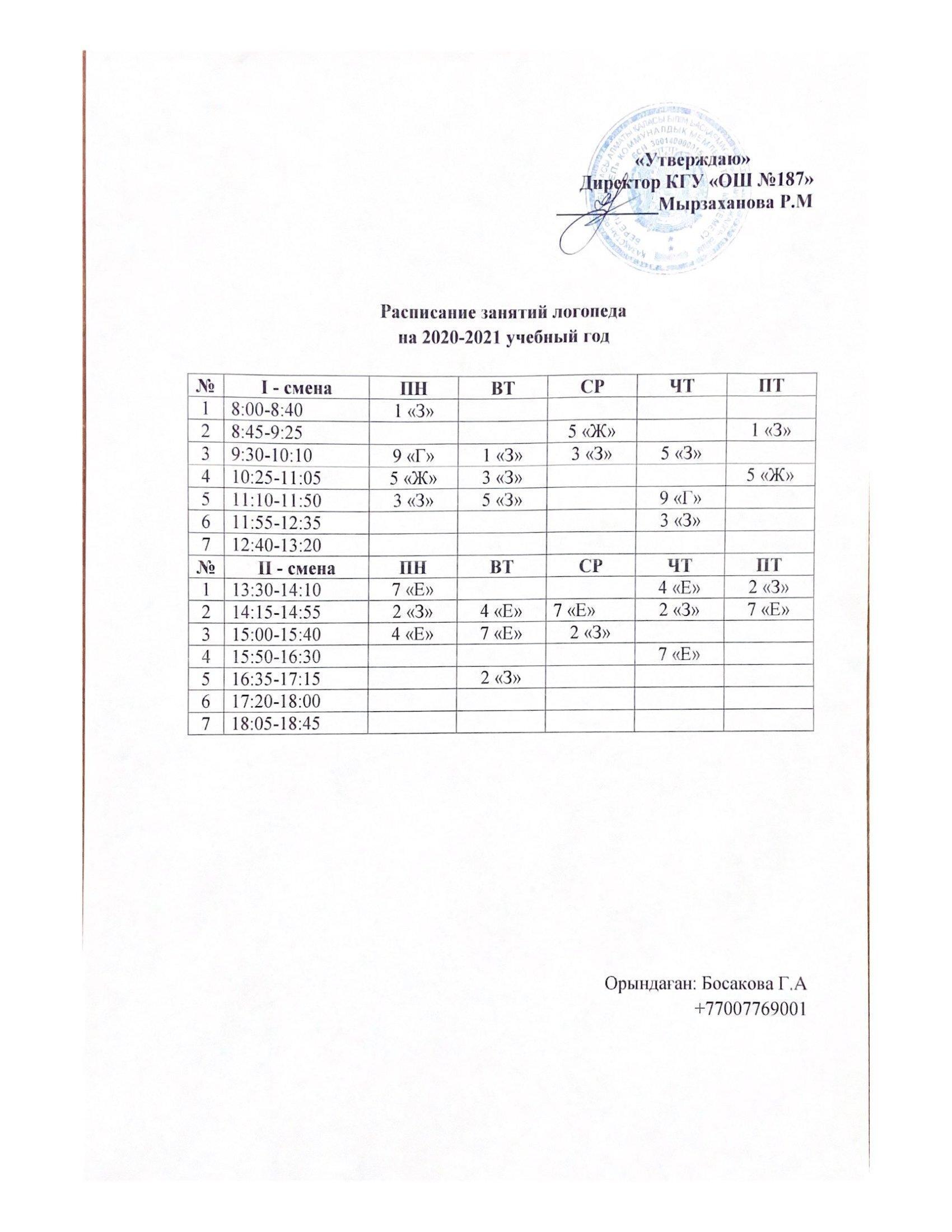 Расписание занятий логопеда » КГУ «Общеобразовательная школа №187 » Управления образования г.Алматы