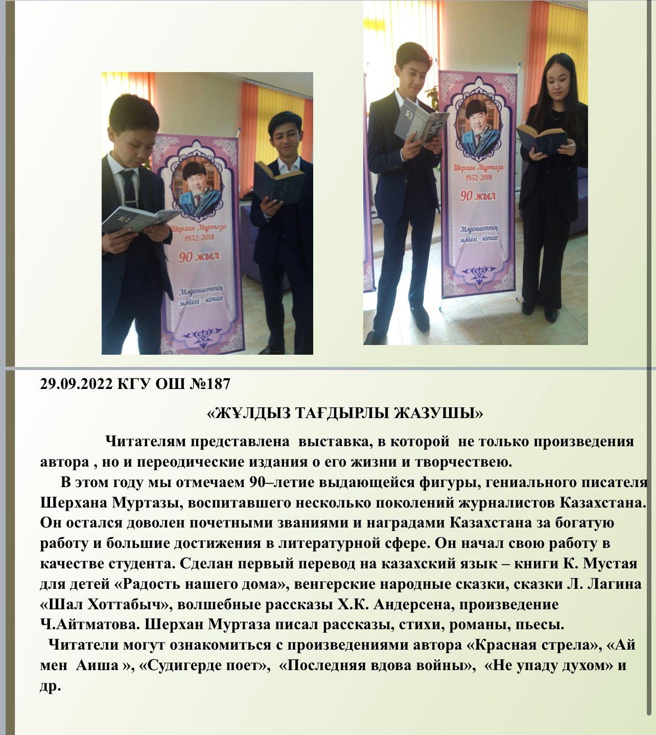 Жұлдыз тағдырлы жазушы » КГУ «Общеобразовательная школа №187 » Управления образования г.Алматы