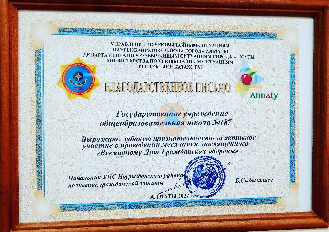 09 апрель 2022 0 1 2 3 4 5 Құттықтаймыз! Дүниежүзілік Азаматтық қорғаныс күніне арналған айлықты өткізуге белсенді қатысқаны үшін "187ЖББМ" КММ ұжымы марапатталды. Құттықтаймыз Осы беттің QR-коды:QR-код этой страницы: