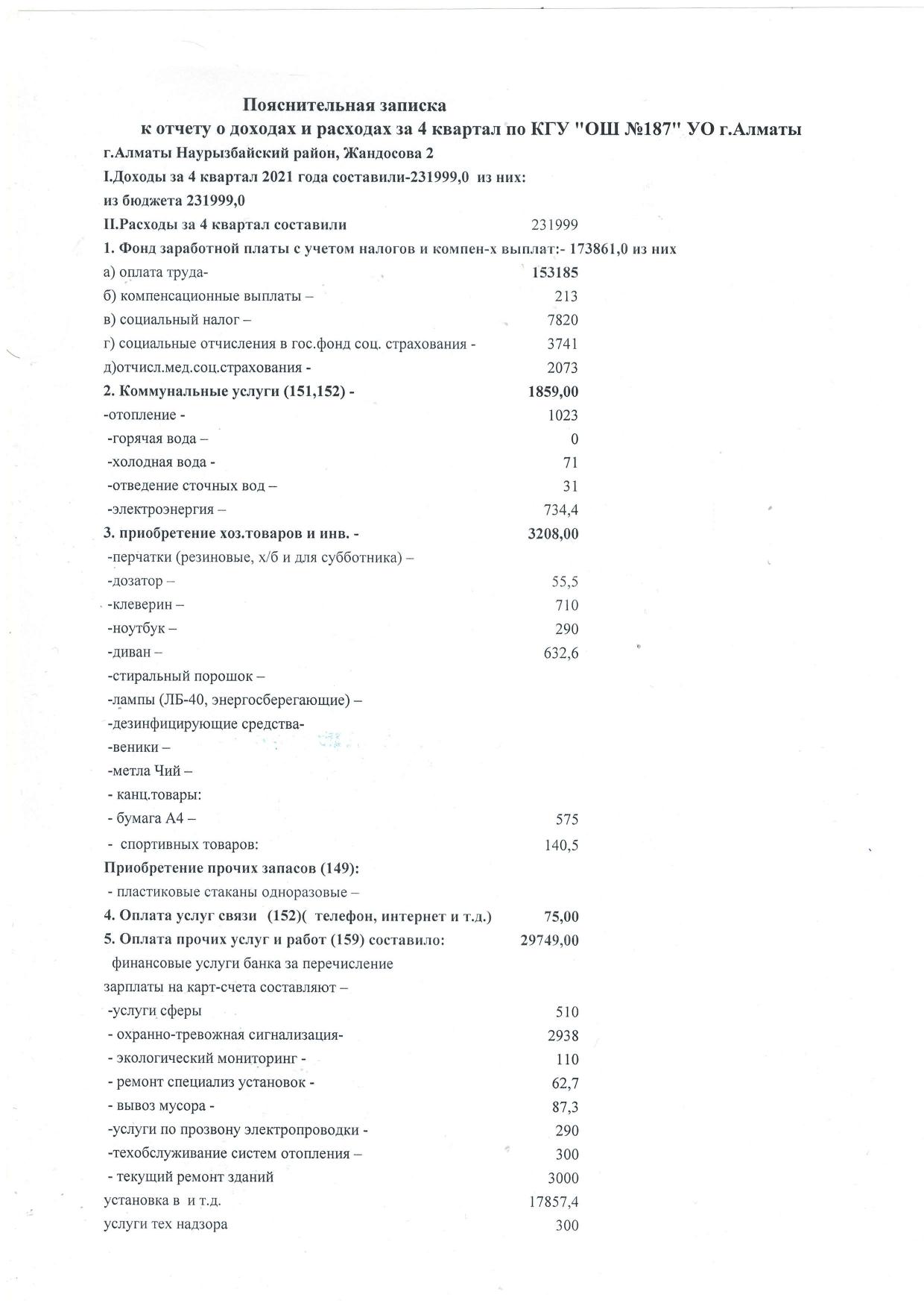 Пояснительная записка 4 квартал » КГУ «Общеобразовательная школа №187 » Управления образования г.Алматы