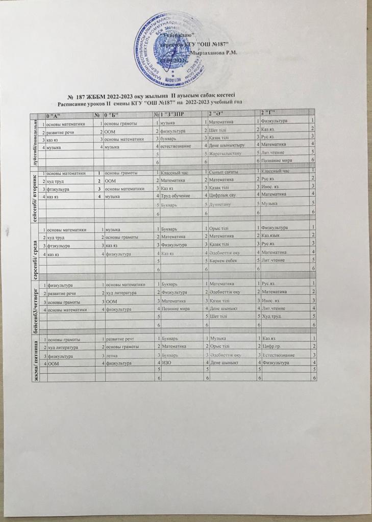 Расписание уроков 0-4 кл » КГУ «Общеобразовательная школа №187 » Управления образования г.Алматы