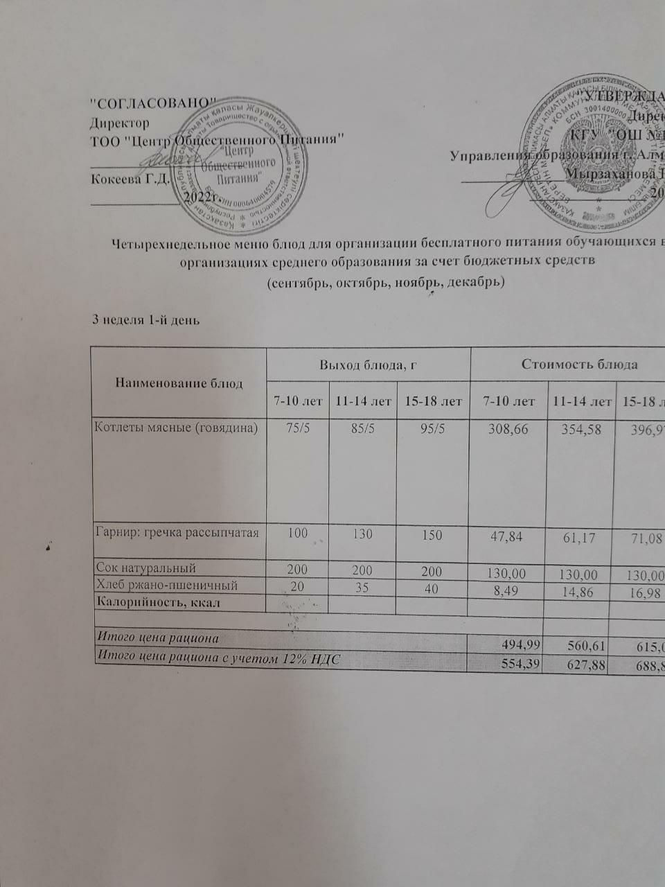 15 сентябрь 2022 Меню 3 неделя 4 день