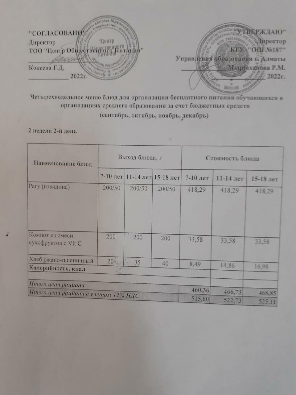 Питание Октябрь 2 неделя 2 день » КГУ «Общеобразовательная школа №187 » Управления образования г.Алматы