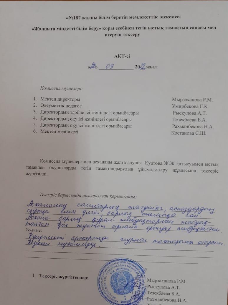 20 сентябрь 2022 0 1 2 3 4 5 Тегін ыстық тамақтың сапасы мен игеруін тексеру АКТ-сі Осы беттің QR-коды:QR-код этой страницы: