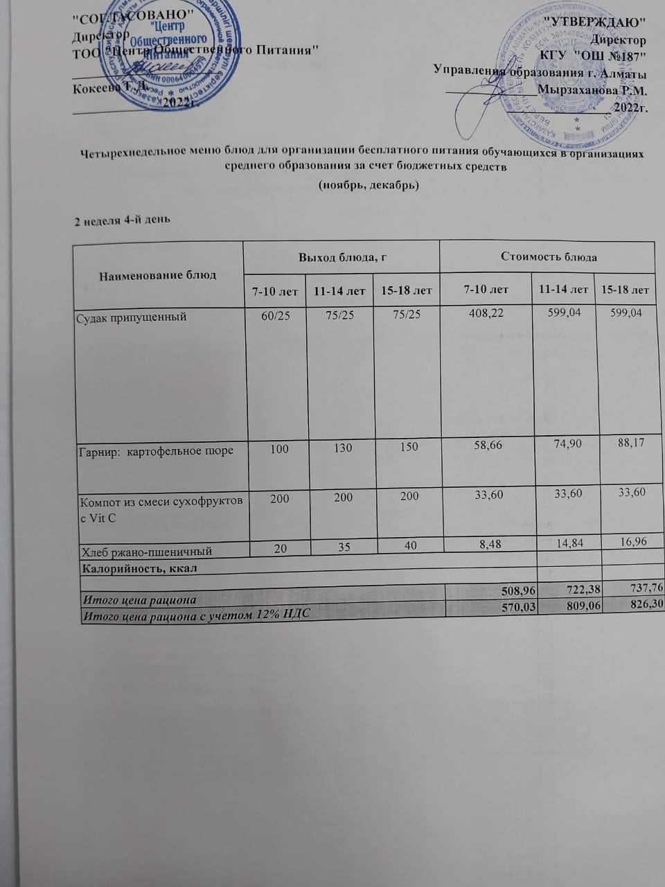 Питание Декабрь 2 неделя 4 день » КГУ «Общеобразовательная школа №187 » Управления образования г.Алматы