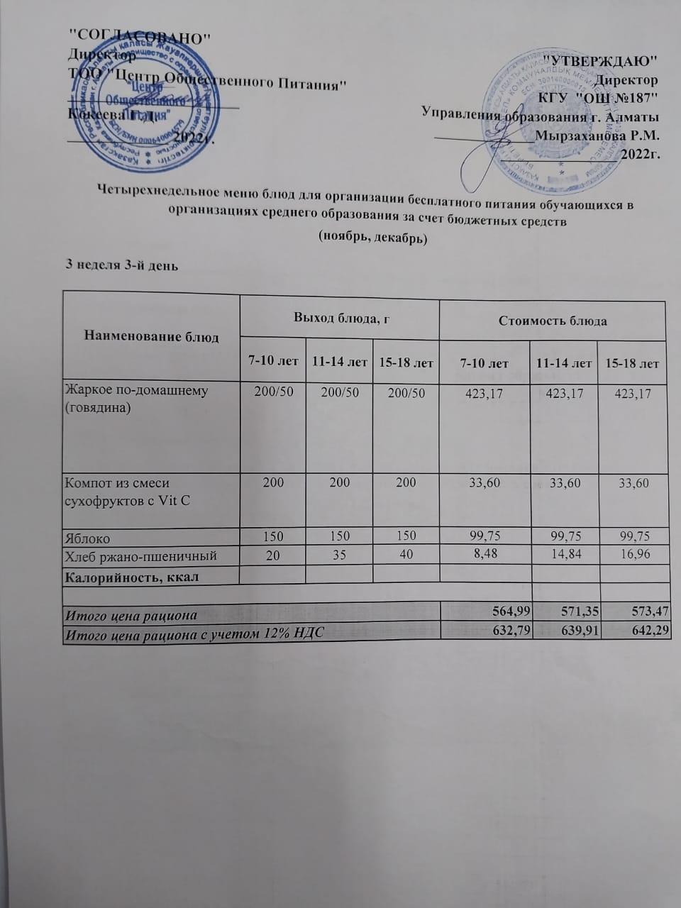 Питание Декабрь 3 неделя 3 день » КГУ «Общеобразовательная школа №187 » Управления образования г.Алматы