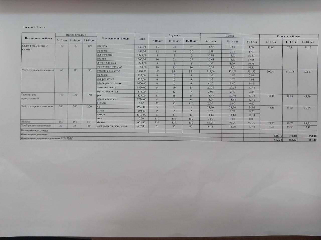 Питания Январь 1 неделя 3 день » КГУ «Общеобразовательная школа №187 » Управления образования г.Алматы