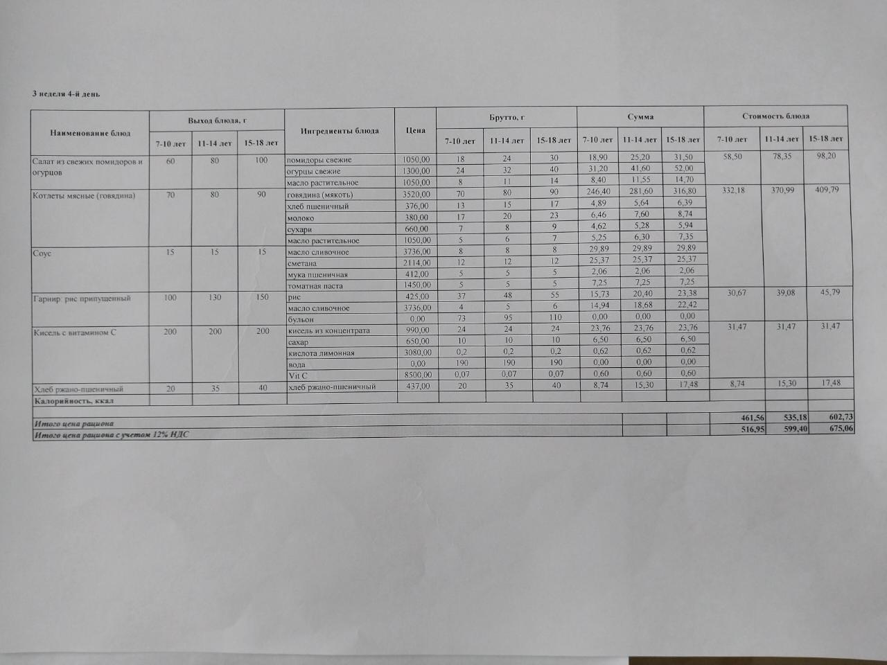 Питание Январь 3 неделя 4 день