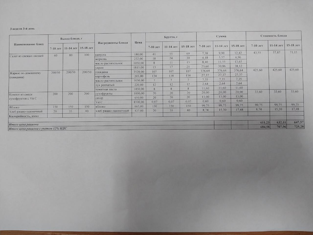 Питание Январь 3 неделя 3 день
