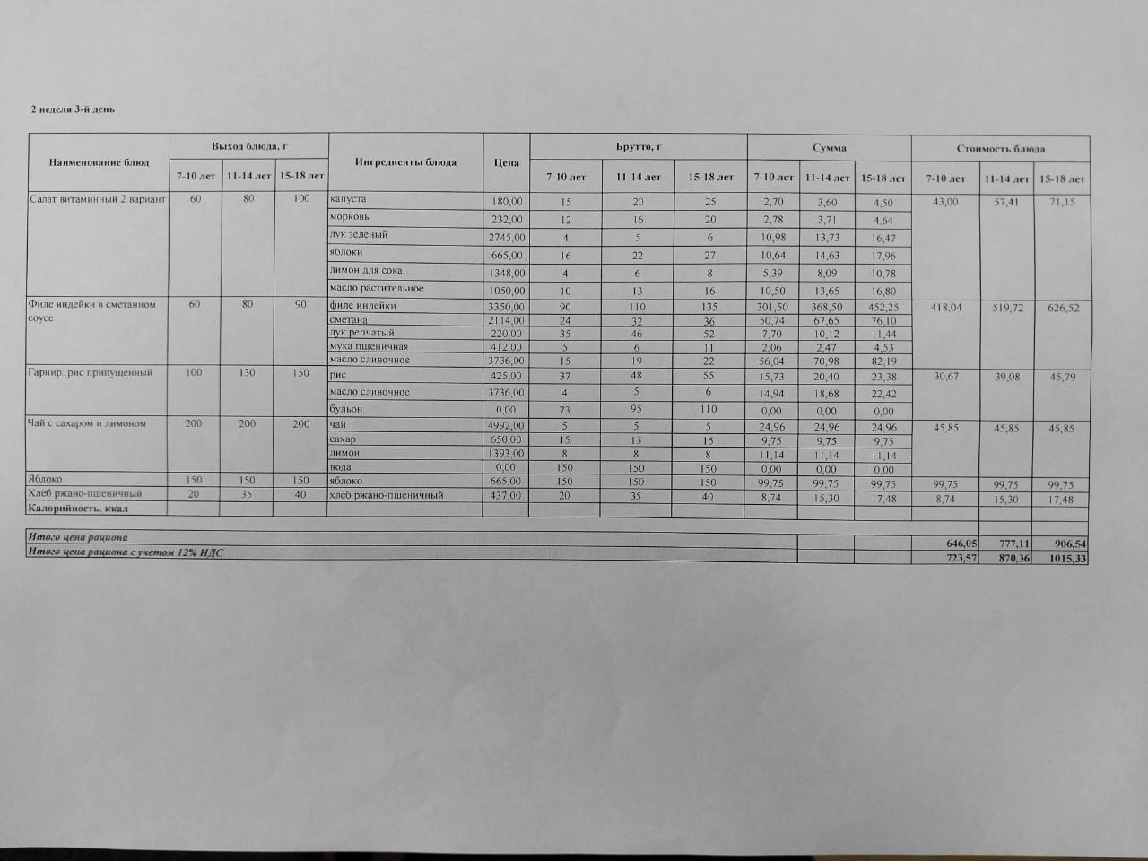 Питание Февраль 2 неделя 3 день