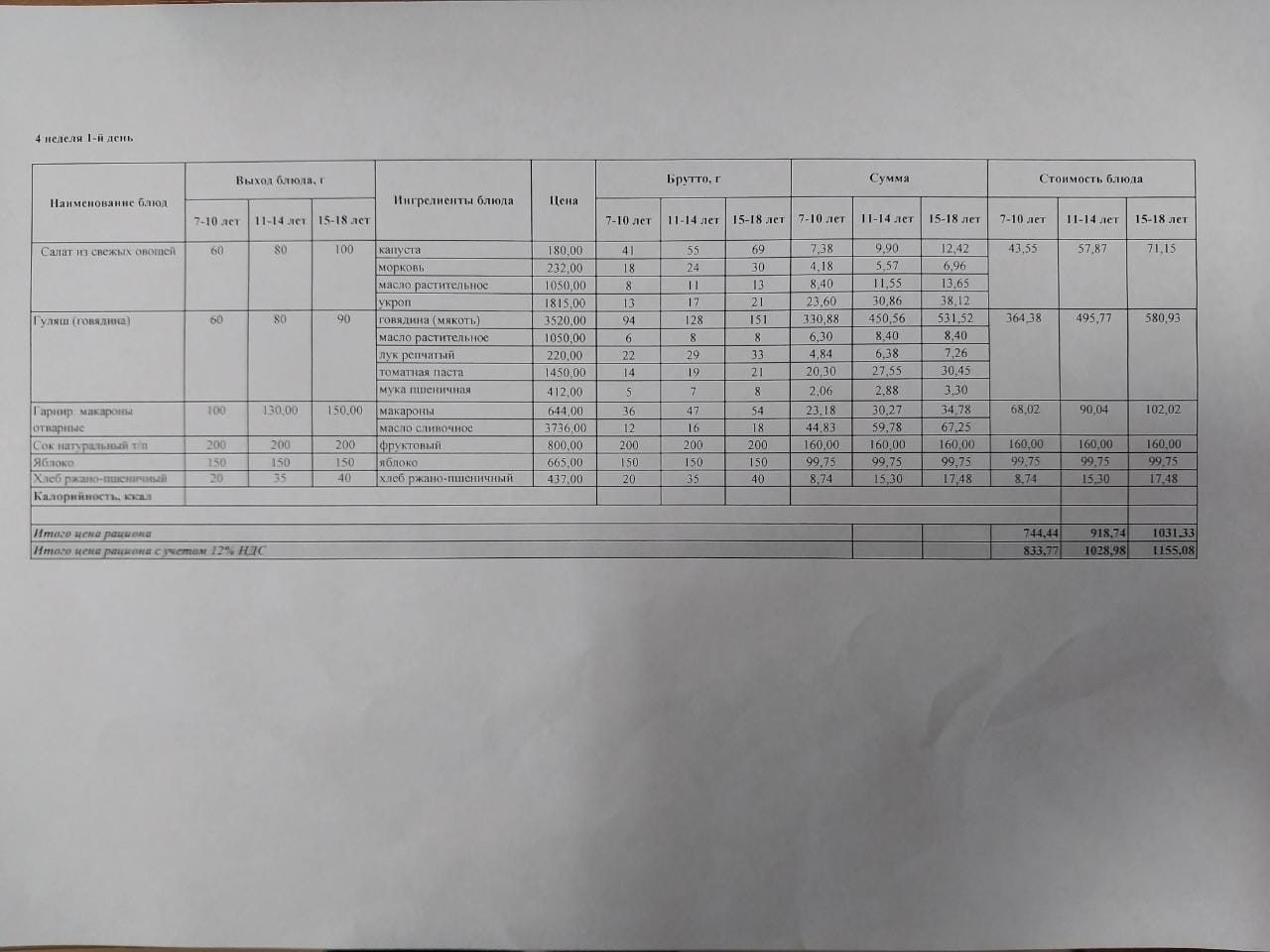 Питание Апрель 4 неделя 1 день » КГУ «Общеобразовательная школа №187 » Управления образования г.Алматы