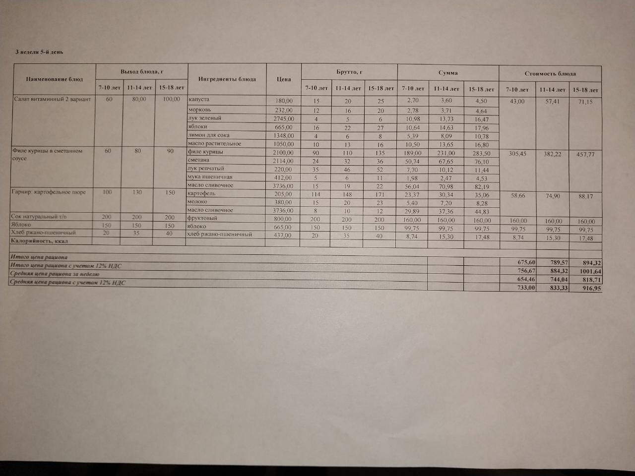Питание Май 3 неделя 5 день
