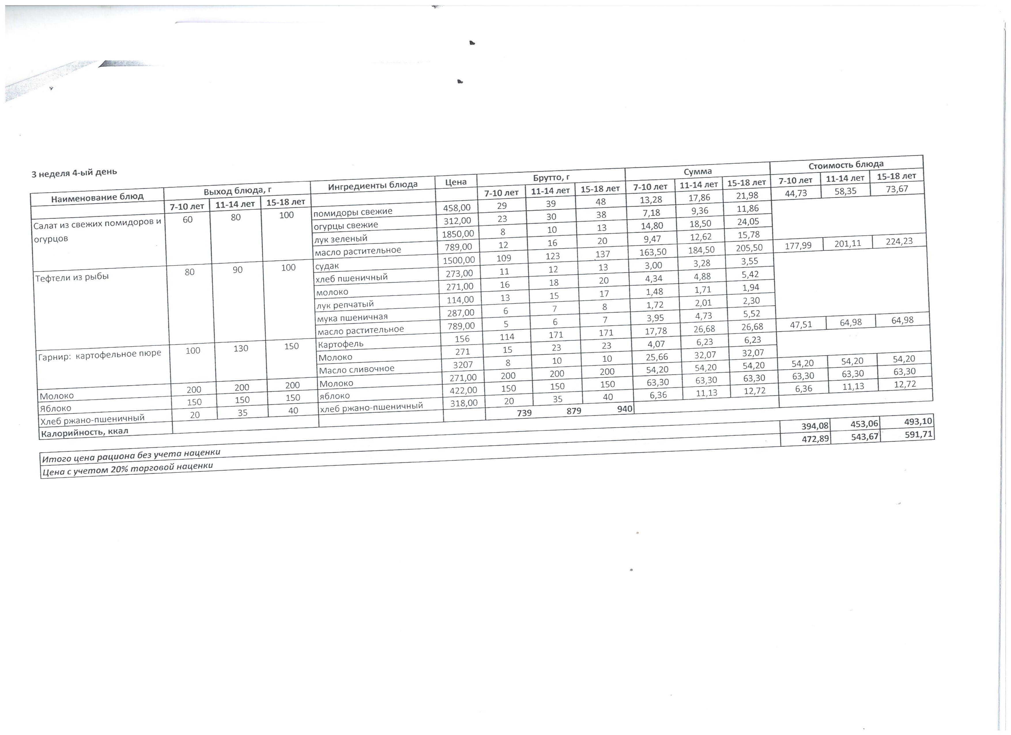 20 сентябрь 2021 Меню 4неделя 1день