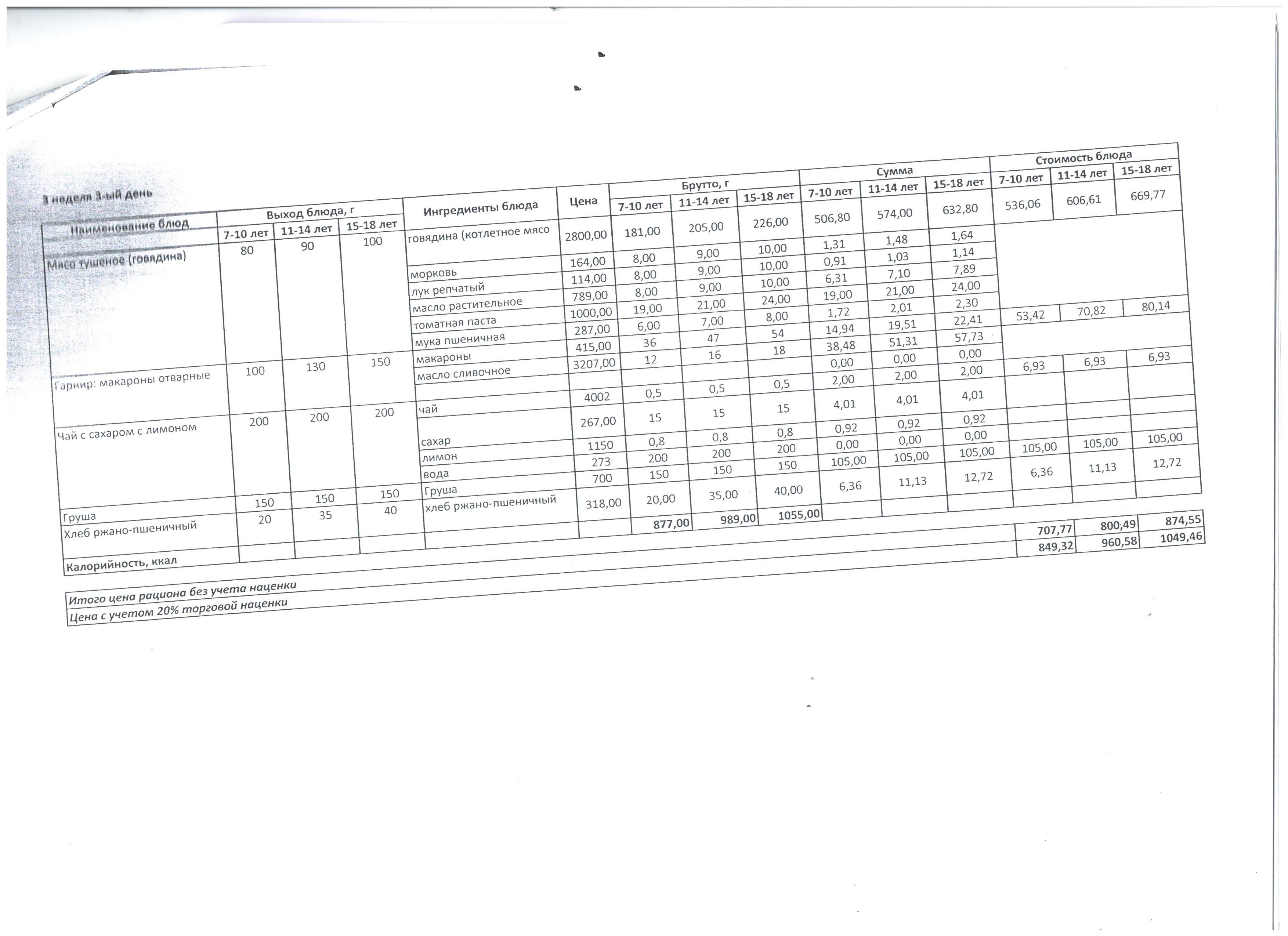 Меню 3неделя 1день