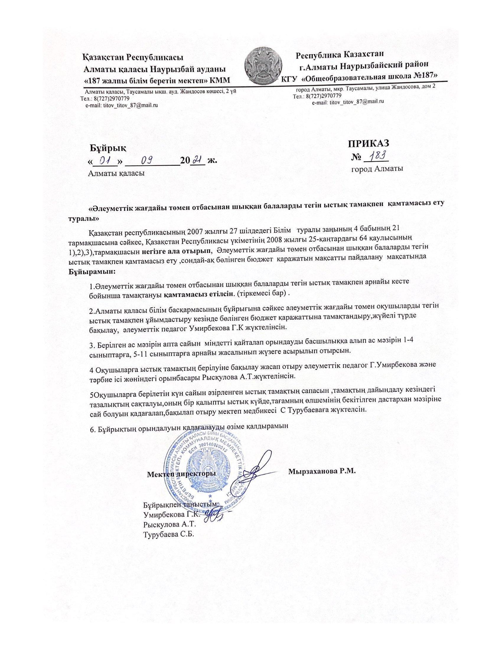 01 сентябрь 2021 0 1 2 3 4 5 Әлеуметтік жағдайы төмен отбасынан шыққан балаларды тегін ыстық тамақпен қамтамасыз ету Осы беттің QR-коды:QR-код этой страницы: