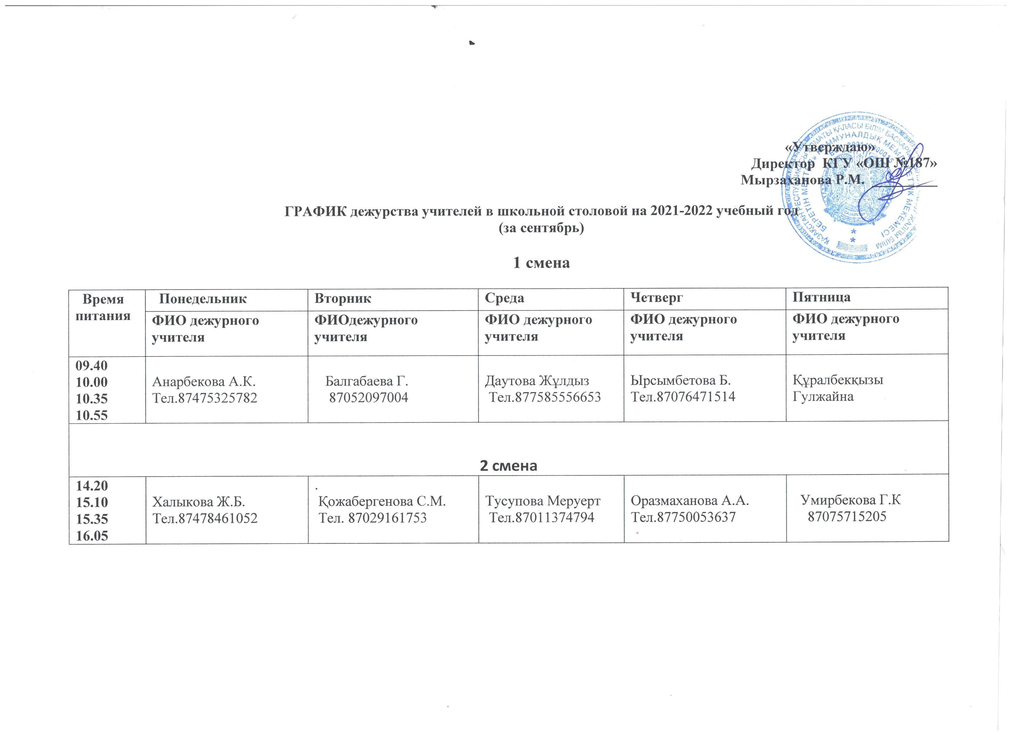 02 сентябрь 2021 0 1 2 3 4 5 График дежурства учителей в школьной столовой Осы беттің QR-коды:QR-код этой страницы: