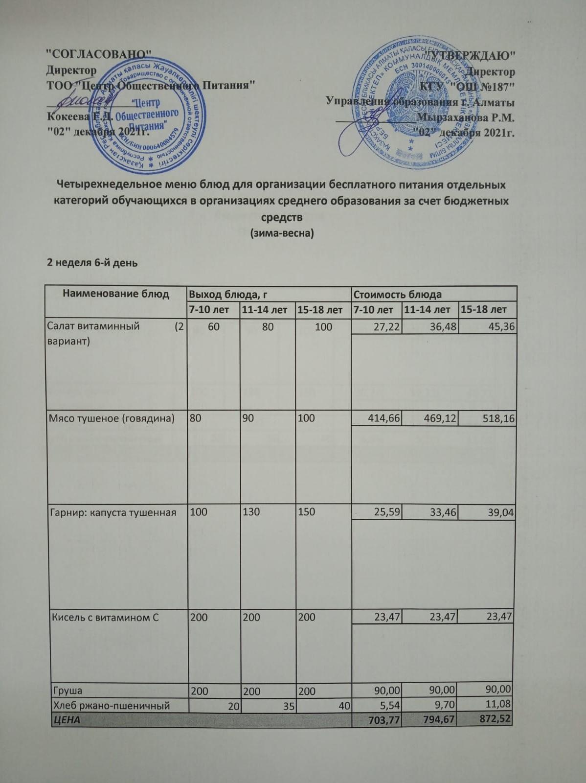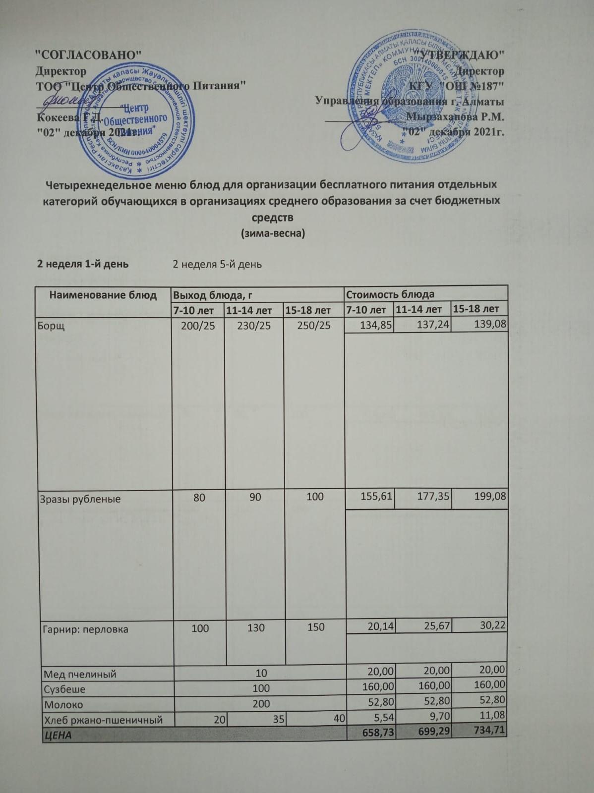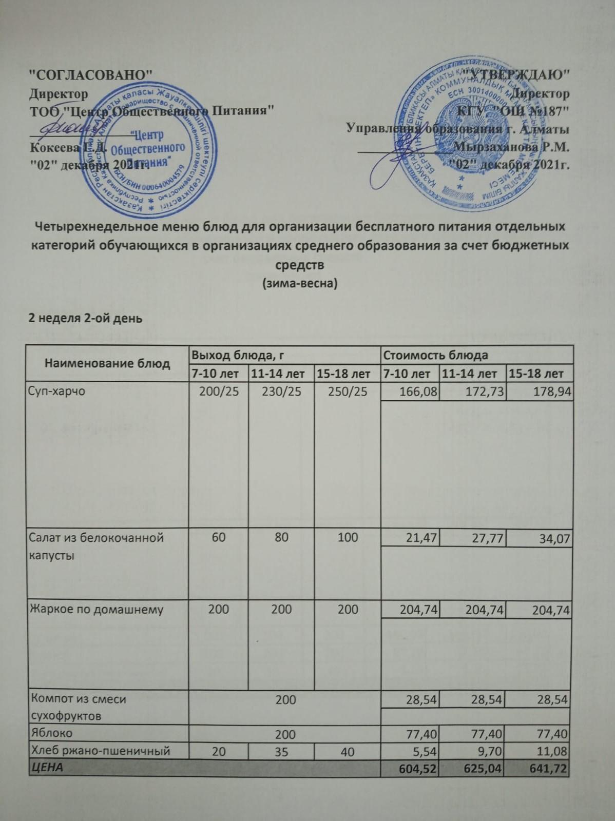 Меню 2неделя (зима-весна) » КГУ «Общеобразовательная школа №187 » Управления образования г.Алматы