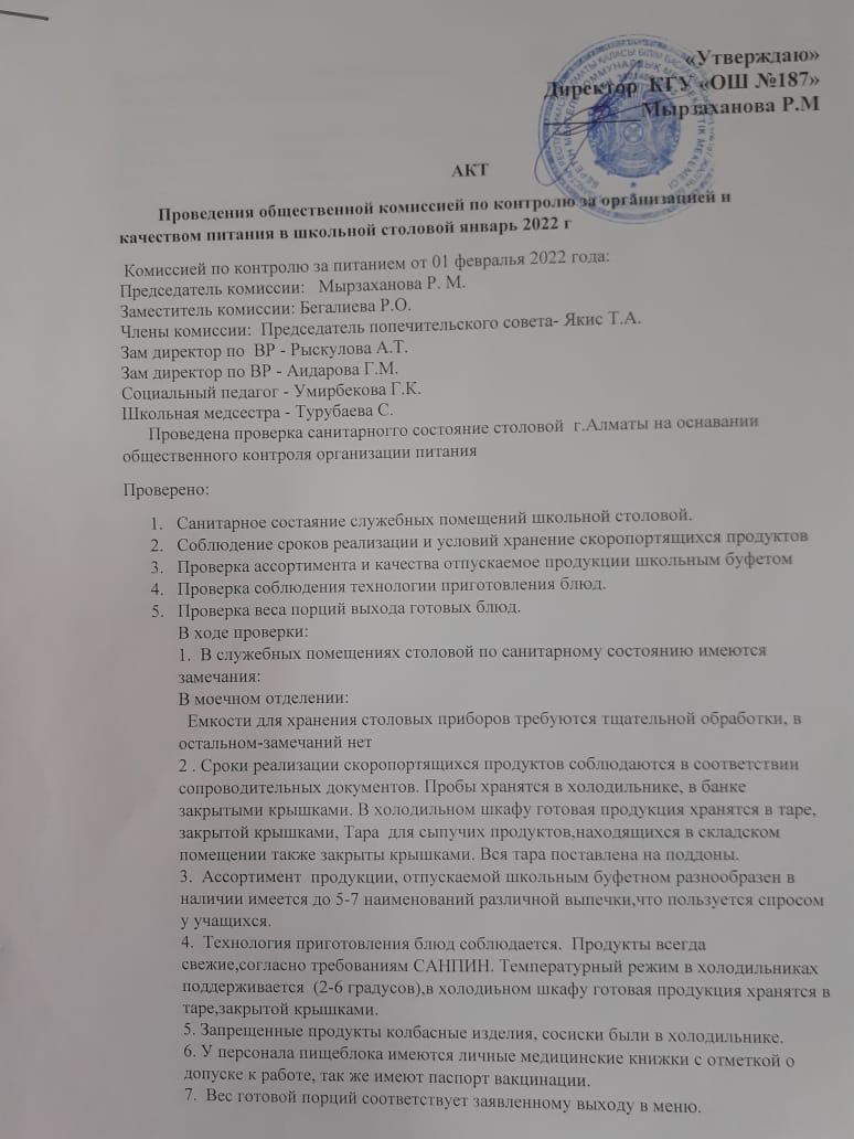 01 февраль 2022 0 1 2 3 4 5 АКТ проведения общественной комиссией по контролю за организацией и качеством питания в школьной столовой январь 2022г Осы беттің QR-коды:QR-код этой страницы: