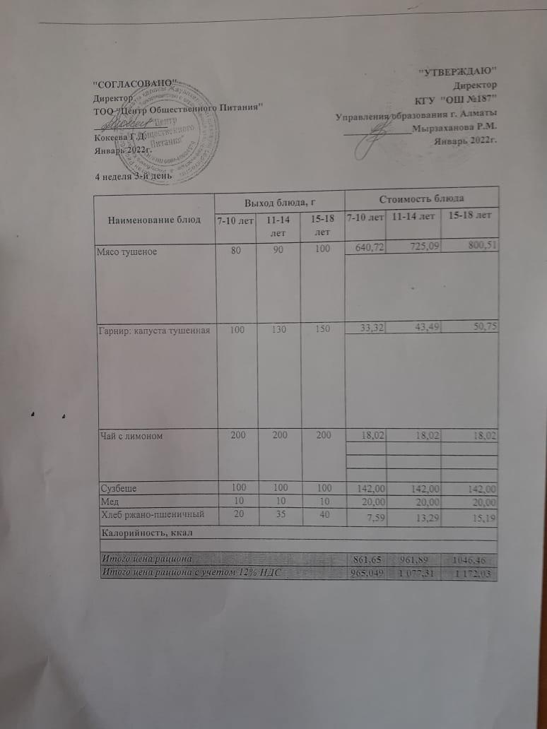 меню 4 неделя 3-день » КГУ «Общеобразовательная школа №187 » Управления образования г.Алматы