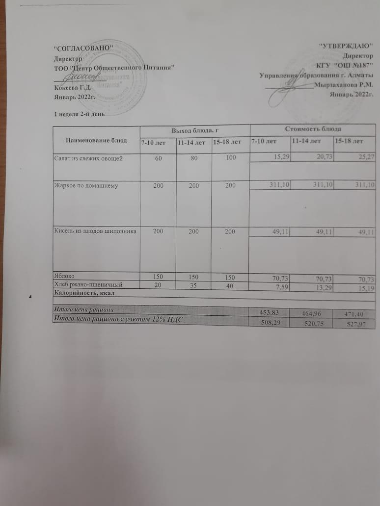 меню 1 неделя 2-день » КГУ «Общеобразовательная школа №187 » Управления образования г.Алматы