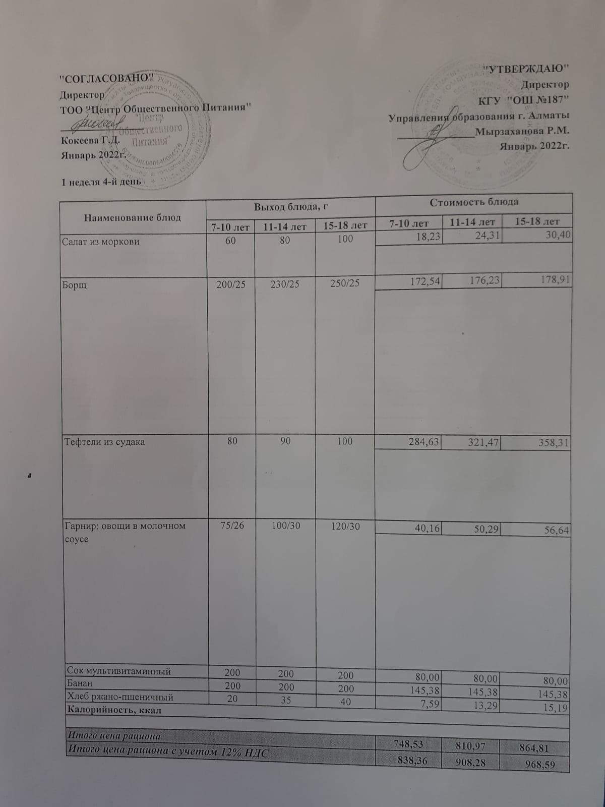 меню 1 неделя 4-день » КГУ «Общеобразовательная школа №187 » Управления образования г.Алматы