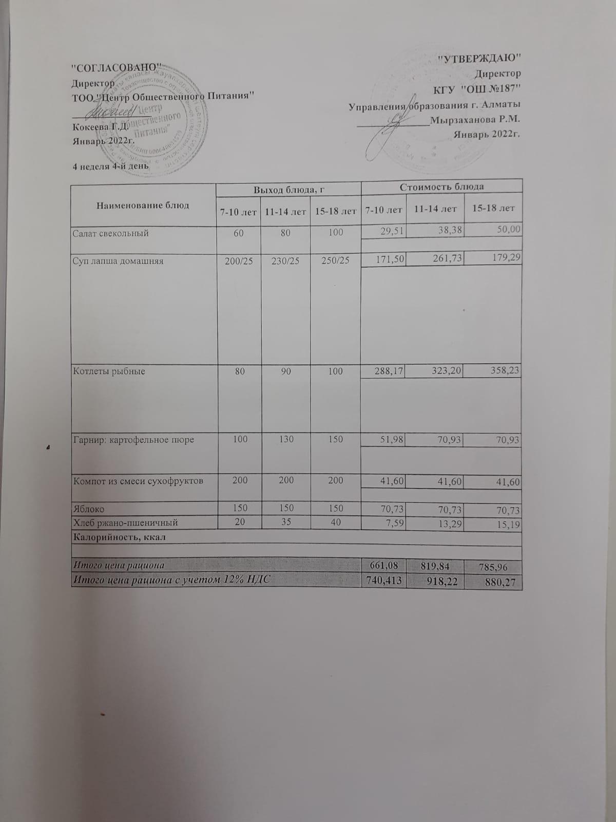 меню 4 неделя 4-день » КГУ «Общеобразовательная школа №187 » Управления образования г.Алматы