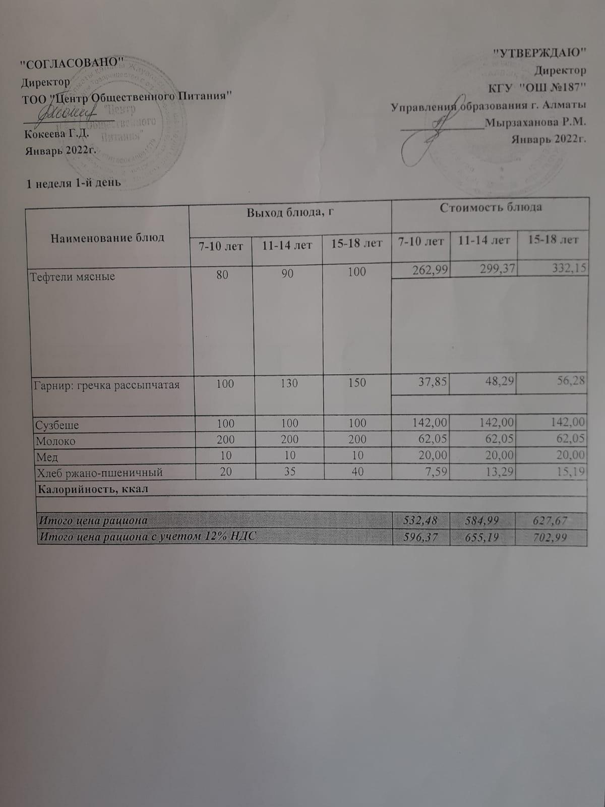 меню 1 неделя 1-день » КГУ «Общеобразовательная школа №187 » Управления образования г.Алматы