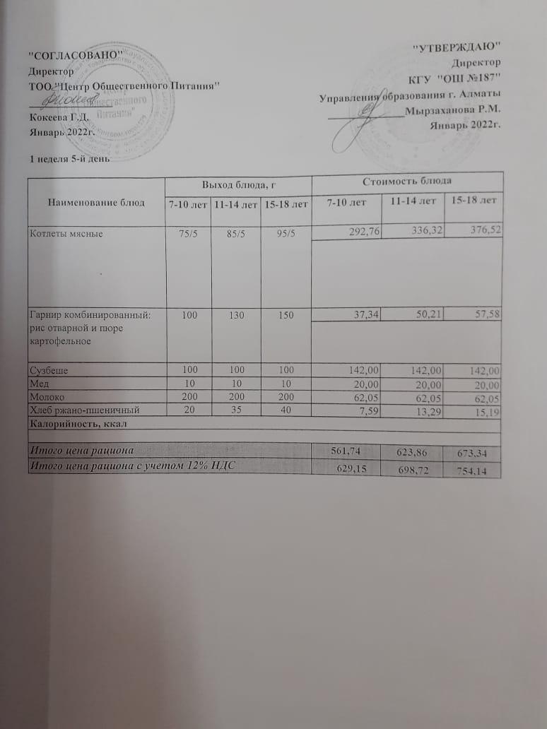 меню 1 неделя 5-день » КГУ «Общеобразовательная школа №187 » Управления образования г.Алматы