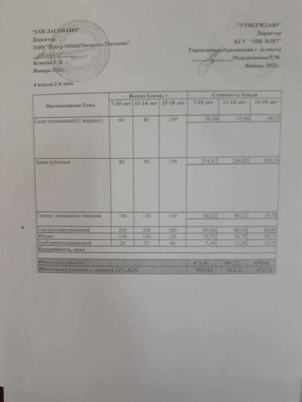 меню 4 неделя 2-день » КГУ «Общеобразовательная школа №187 » Управления образования г.Алматы