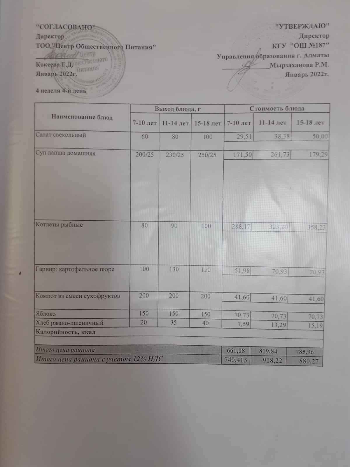 меню 4-неделя 4-день » КГУ «Общеобразовательная школа №187 » Управления образования г.Алматы