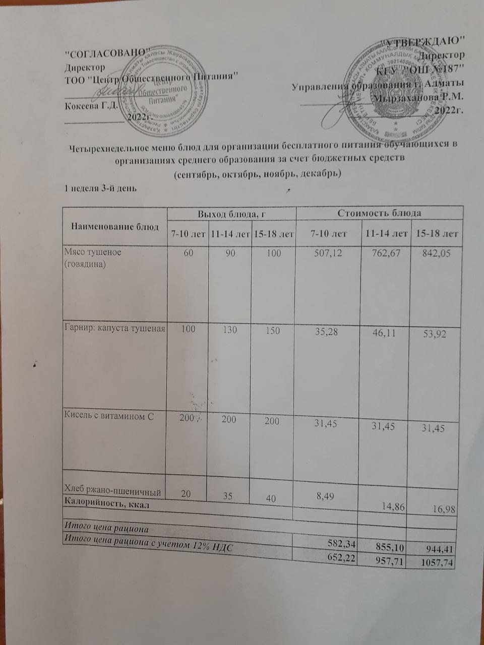 Меню 1 неделя 3 день » КГУ «Общеобразовательная школа №187 » Управления образования г.Алматы