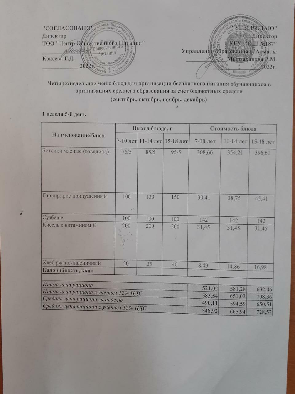 Меню 1 неделя 5 день » КГУ «Общеобразовательная школа №187 » Управления образования г.Алматы
